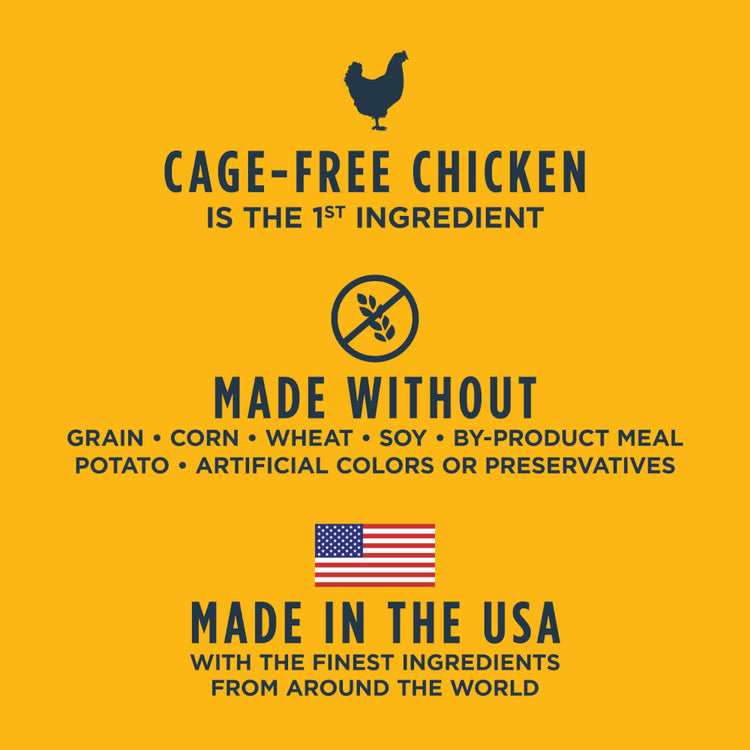 • Cage-free chicken is the first ingredient - packed with animal protein for strong, lean muscles