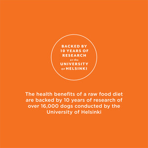 Unlike kibble or canned food, raw is never cooked and minimally processed to retain its natural flavors, antioxidants, amino acids, vitamins, and minerals—providing a diet closer to what nature intended. Freeze-drying locks in the nutrition of raw food while offering the convenience of a dry meal you can store on your pantry shelf. Serve it as is, or rehydrate with warm water for extra moisture.