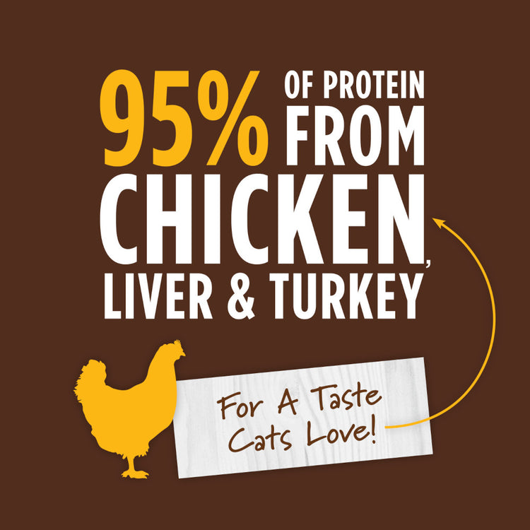 - 95%的蛋白質來自雞肉、火雞肝和雞肝