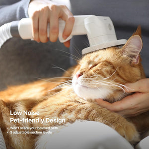 【0dB Noise Grooming】The fan remains silent during pet grooming, activating only when you press the hair suction button, ensuring your furry friend enjoys a noise-free grooming session. One-click mode is not suitable for the remover roller and crevice tool.