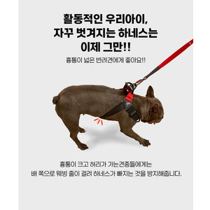 For breeds with a larger chest and a slender waist, the webbing strap around the belly prevents the harness from slipping off.