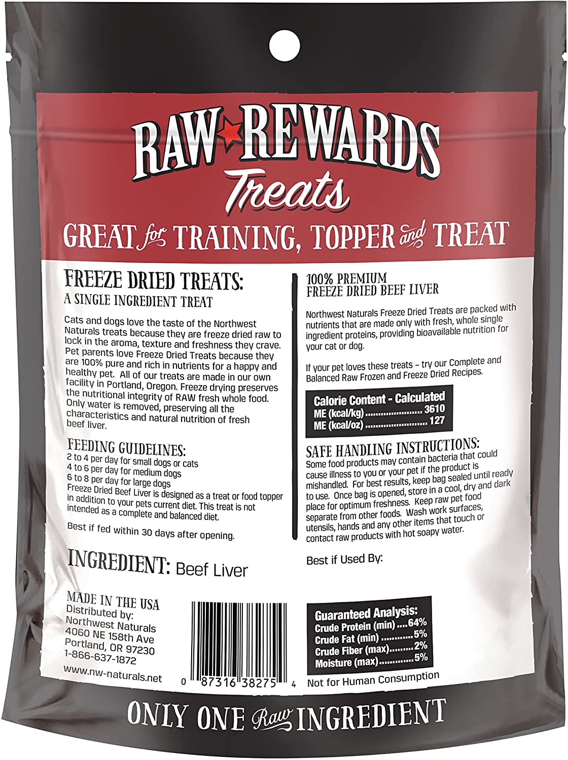 Raw Rewards Freeze Dried Beef Liver Treats for Dogs & Cats