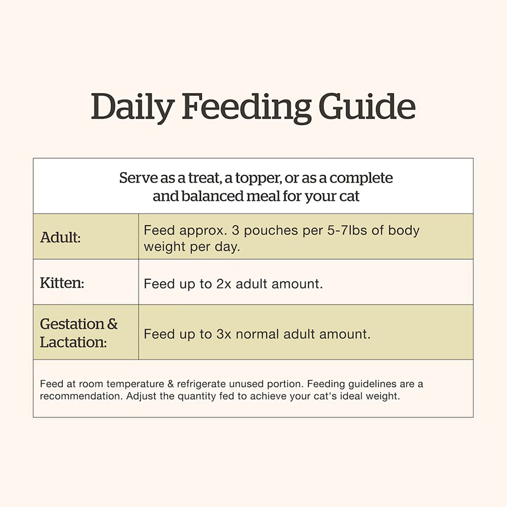 不含穀物、麩質、人造色素或防腐劑,配方天然純淨,特別適合腸胃敏感或對飲食有要求的貓咪,作為每日主食或搭配乾糧享用皆宜。