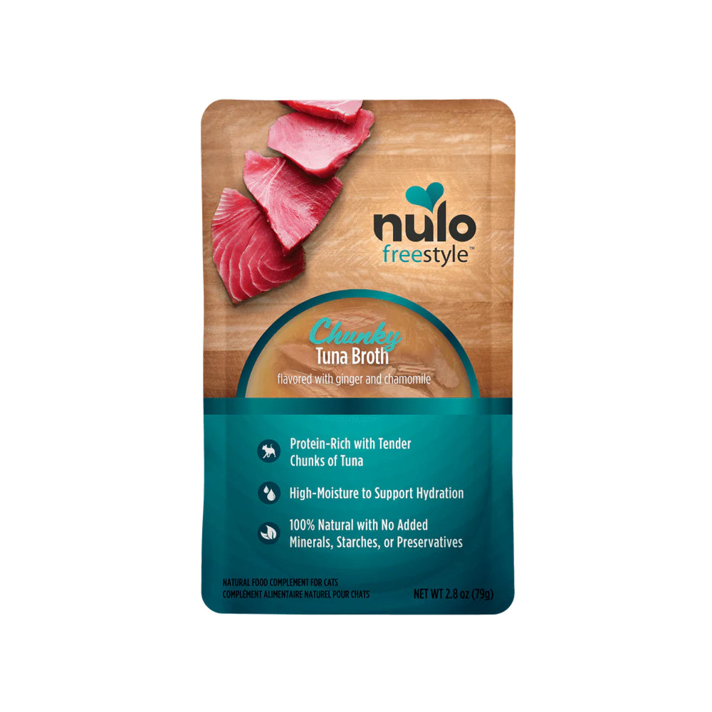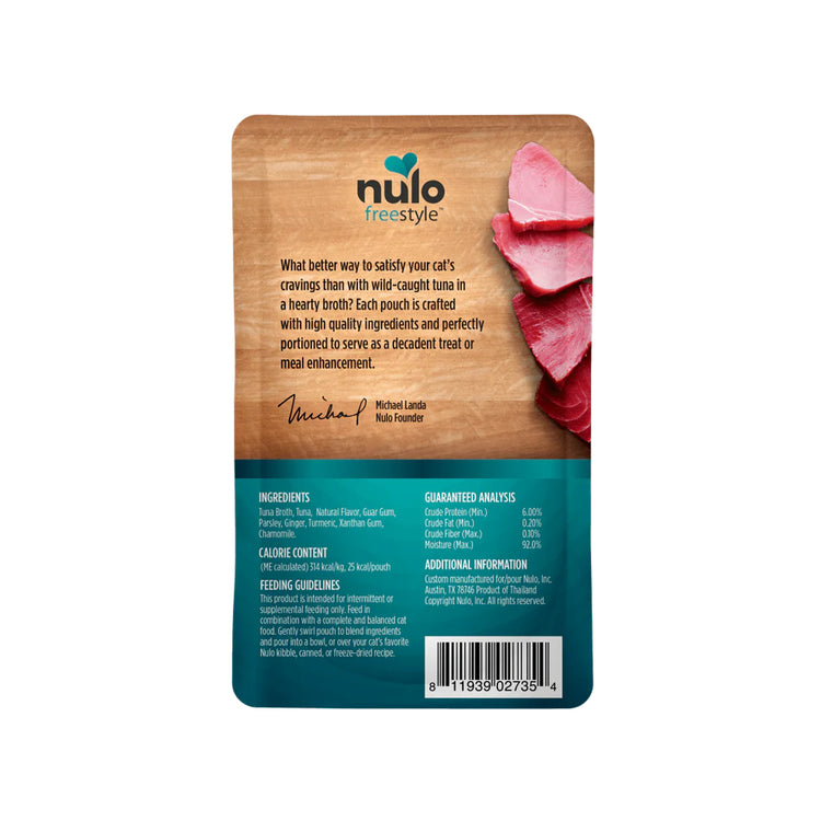 Indulge your cat with the savory taste of the Nulo FreeStyle Chunky Tuna Broth, made with wild-caught tuna in a rich meaty broth. Each pouch is carefully portioned to serve as a decadent treat or a flavorful meal topper, crafted with high-quality natural ingredients that your cat will crave.