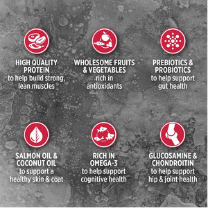 • Salmon oil and coconut oil to help maintain a healthy skin and coat