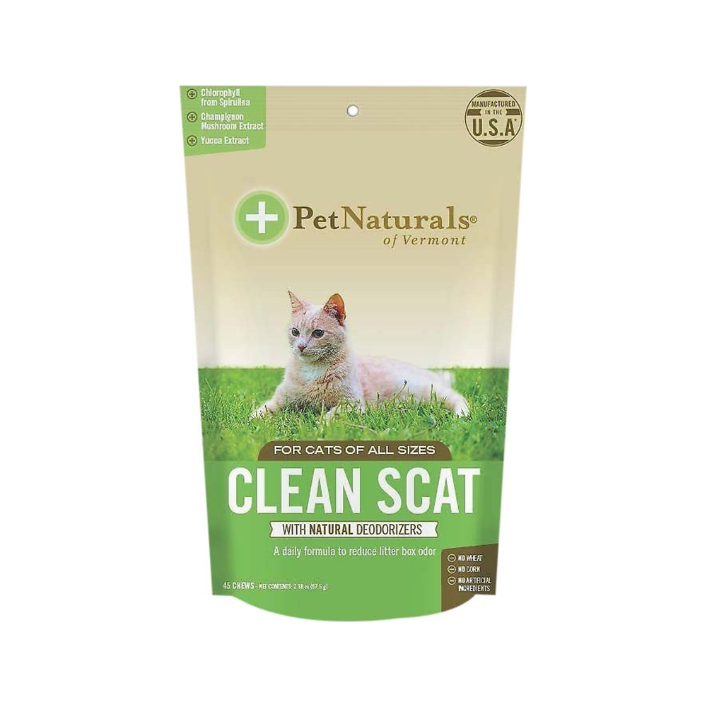 Clean Scat is designed to reduce fecal odor in cats and freshen their breath with a tasty chew that cats love! Clean Scat features Champex brand Champignon Mushroom, which is extensively studied for its ability to suppress odor-causing chemicals in the intestines.These delicious chews also contain Yucca and spirulina to deodorize while supporting toxin removal. With Clean Scat, your cat will have fresher breath and a fresher litter box!
