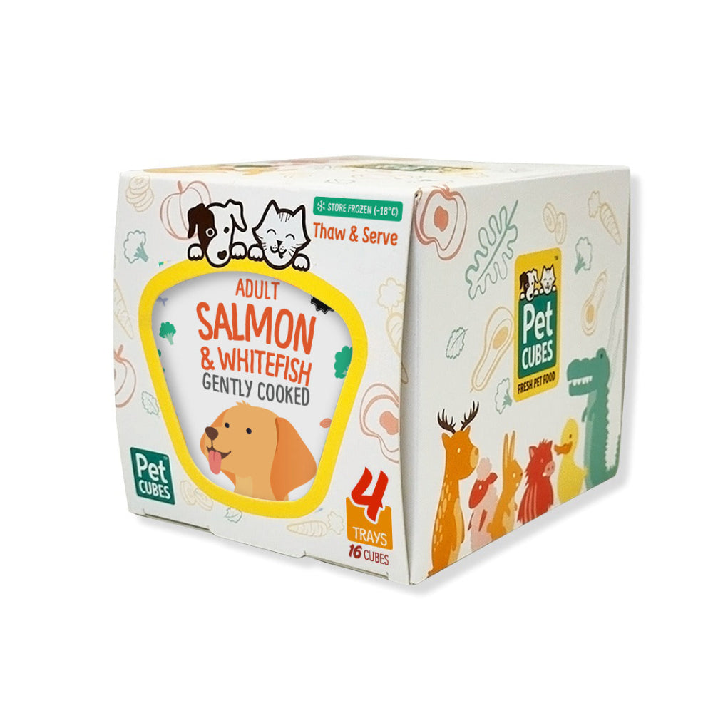 PetCubes - 冷凍新鮮人類級輕煮鮭魚及白魚成犬狗糧