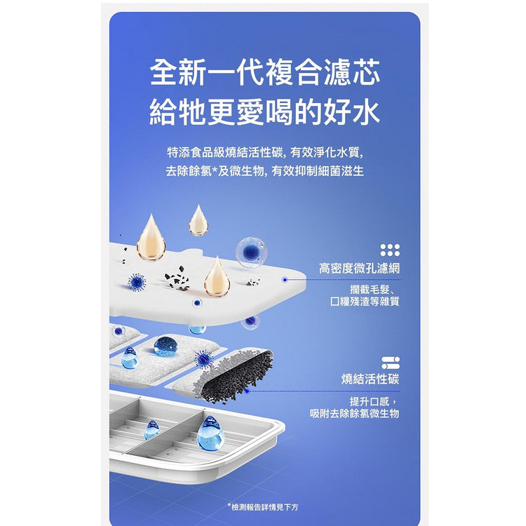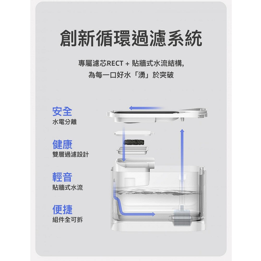 這款智能寵物飲水噴泉提供多種模式,包括連續流或間歇模式,可根據寵物的偏好進行自定義。多層過濾器利用單向循環過濾系統去除毛髮、沉積物和污垢,為寵物提供衛生和純淨的飲用體驗。