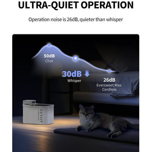• Quietly & Easy to Clean: The cat fountain features a removable tank design that is very easy to clean, and with a wireless pump, you can easily detach the interior without worrying about tangled cords. With a sound of less than 26dB, you can sleep peacefully even if the fountain is next to you and your pets.