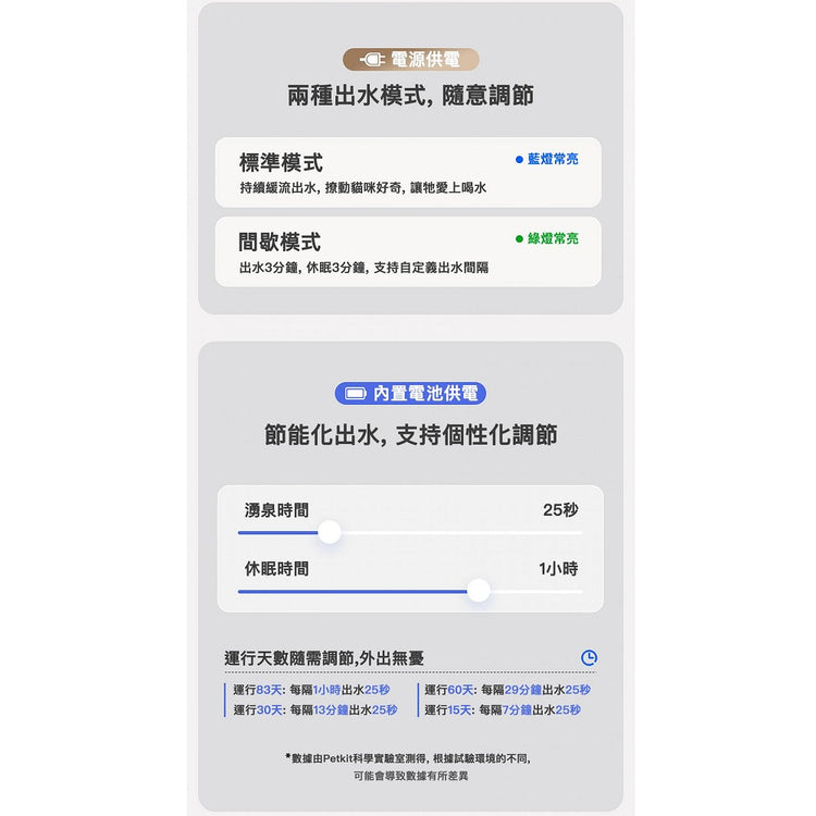 • Wireless Drinking Fountain: PETKIT new upgraded wireless water dispenser, no need to plug in, you can place it anywhere: kitchen, bedroom, balcony, etc., bring you a new feeling; 5000mAh high-capacity battery, service life up to 83 days! No more worry about your cat or dog running out of water during power outages or short trips!