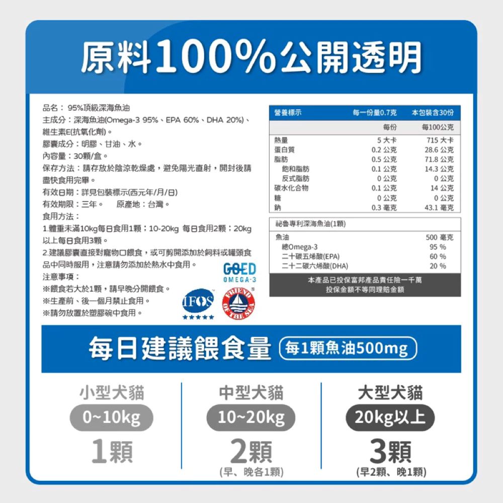 富含必需的歐米伽-3脂肪酸,包括EPA和DHA,有助於促進健康的皮膚、光澤的毛皮、關節靈活性和心血管健康。