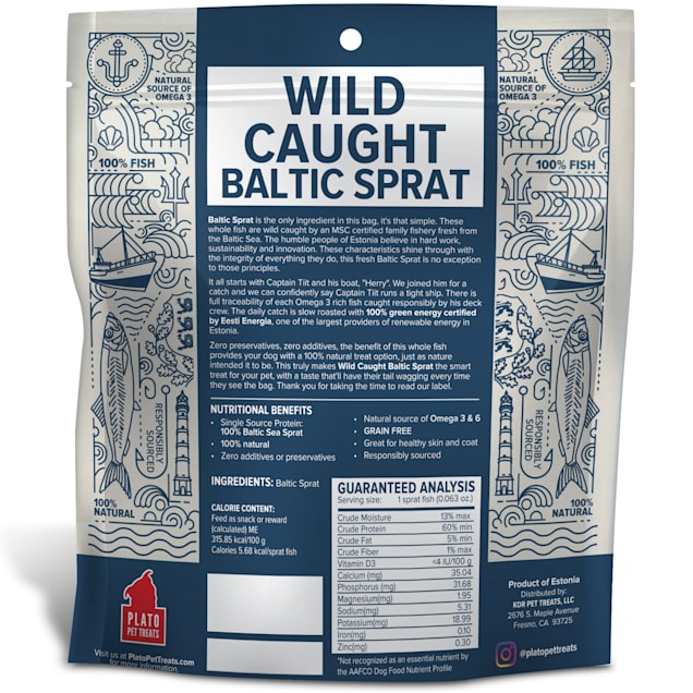 • Air-dried sprat treat to reward your furbaby.