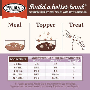 Primal Pet Foods 認為提供寵物另一種營養來源至關重要,因為我們心愛的動物中有相當多被診斷出與飲食相關的疾病。所有 Primal 產品僅使用最高品質的生食原料,提供寵物高度消化的氨基酸、維生素和礦物質,這些都是動物生理功能的基礎建設。