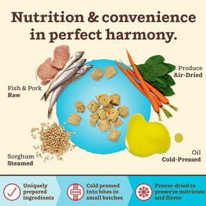 • Crafted with responsibly sourced, high-quality raw freeze-dried protein, air-dried USDA Organic fruits & vegetables, gently steamed sorghum, and cold-pressed oils