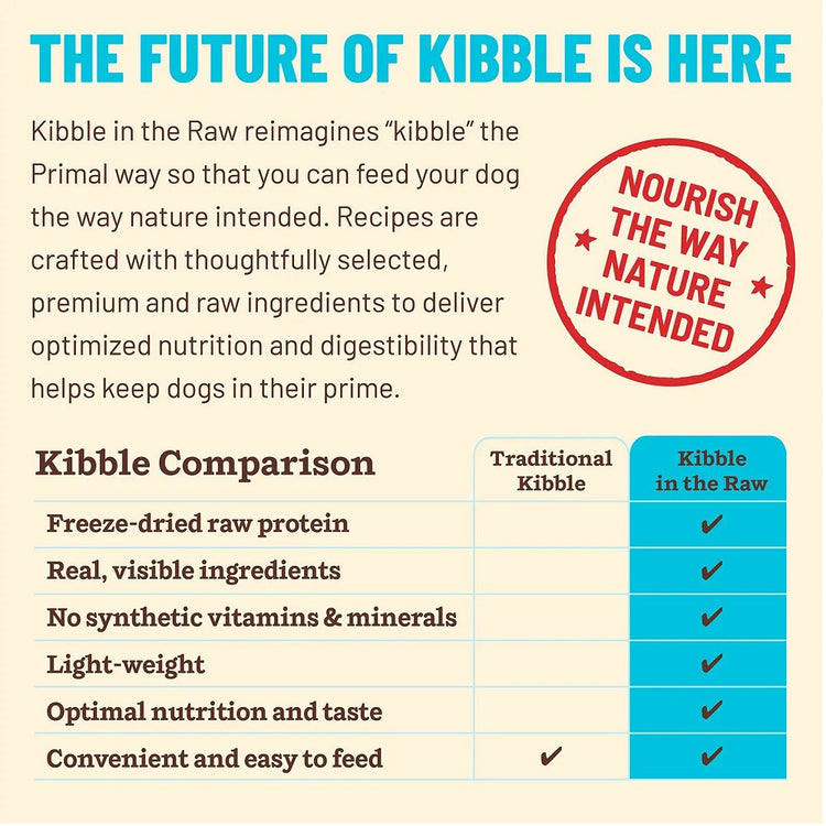 We believe in the power of natural ingredients, that's why Primal Kibble in the Raw Freeze-Dried Fish & Pork Dog Food contains no artificial preservatives, colors, or flavors. It is free from grains, gluten, and fillers - making it a great option for dogs with specific dietary requirements or food sensitivities..