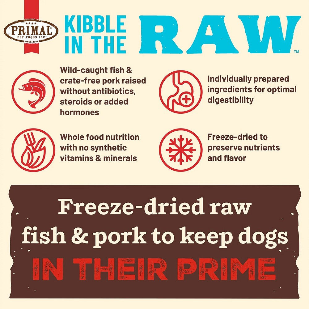 Give your beloved furry friend the nutrition they deserve with Primal Kibble in the Raw Freeze-Dried Fish & Pork Dog Food. Nourish them with the power of real, high-quality ingredients for a happy, healthy life.