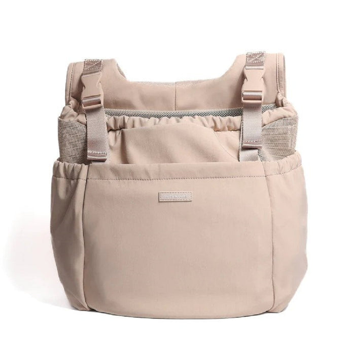 [安全] 可調節網狀開口,防止小狗跳出。 還有一個安全閂鎖可以掛在寵物的項圈上。 兩側有網孔,透氣。
