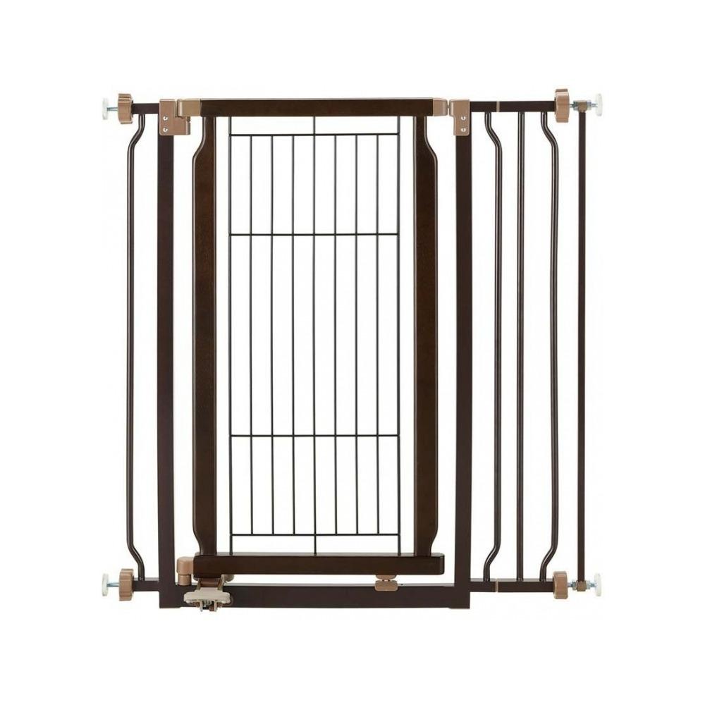 Specially designed Foot Pedal opens Gate Door to allow for hands-free operation; Gate stands 36.6" tall; Fits doorway or hallway openings from 28.3" to 37.2" wide; Adjuster Knob attaches gate to doorway/hallway opening using tension-mount installation; Rubber stoppers protect wall surfaces