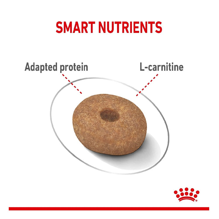配方比一般成年犬糧減少31%脂肪,並加入特別比例的可溶與不可溶纖維,讓狗狗更易有飽足感。高蛋白含量有助維持肌肉量,而左旋肉鹼(L-carnitine)則促進脂肪代謝,為容易發胖的小型犬提供聰明選擇。