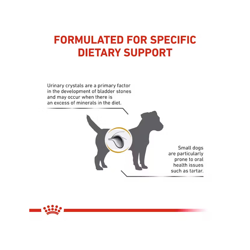 Royal Canin Urinary S/O Small Dog is a veterinary-exclusive diet formulated to manage urinary tract health in small-breed adult dogs (under 10kg). This formula effectively dissolves struvite stones and reduces recurrence of both struvite and calcium oxalate uroliths.