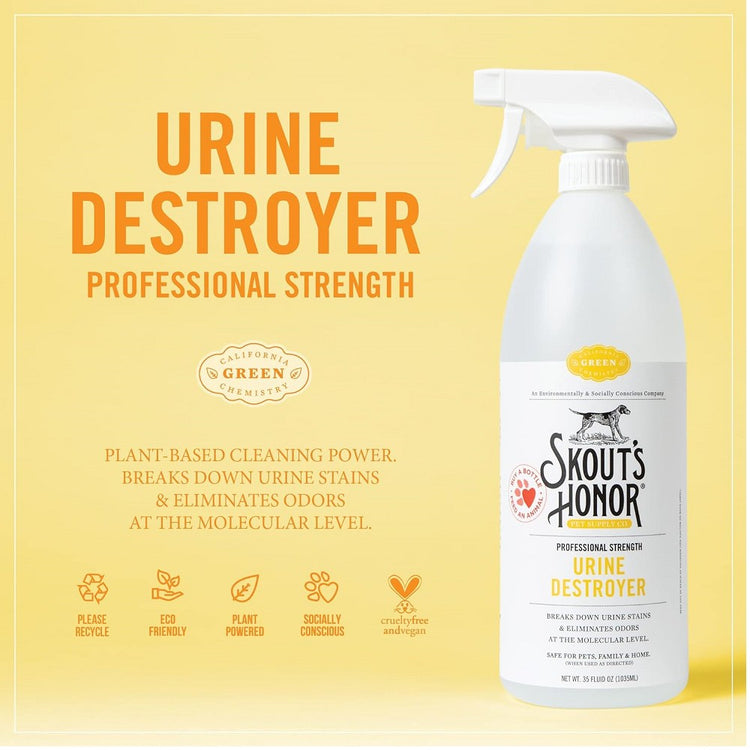 Whether you are potty training a puppy or newly adopted dog, have an incontinent dog or are just dealing with your pet's bad habit, our Urine Destroyer attacks the worst stains & odors and eliminates them for good! It works by breaking down urine stains and eliminating odor at the molecular level.