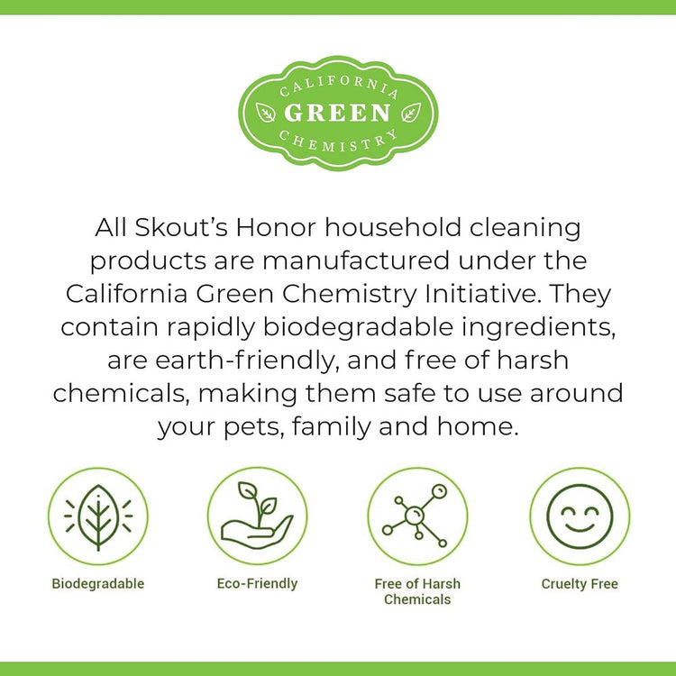 Skout's Honor represents a family of better, faster and stronger green cleaning solutions to everyday pet stain and odor problems. Their products embody the most modern, powerful and environmentally-friendly solutions available without sacrificing cleaning or deodorizing capabilities. Every product is eco-friendly, biodegradable, cruelty free and non-toxic. Their current goal is to motivate a culture of aware consumers by educating customers about the individual impact they can create through conscious-consumerism — everyone can make a difference!