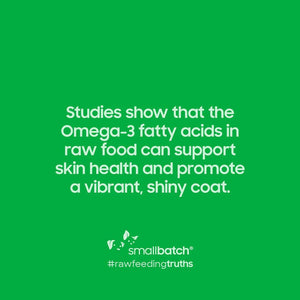 All of smallbatch's ingredients are carefully selected, including certified organic, non-GMO and pesticide-free herbs and vegetables, humanely raised and harvested meats that are free from hormones and antibiotics, as well as pure honest supplements such as organic kelp and bee pollen. You will never see synthetics in its recipes because smallbatch believes in raw nutrition the way nature intended.