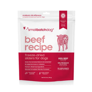 Choose SmallBatch Freeze Dried Sliders for a nutritious, natural feeding option that helps ensure your dog's well-being while supporting the health of our planet.