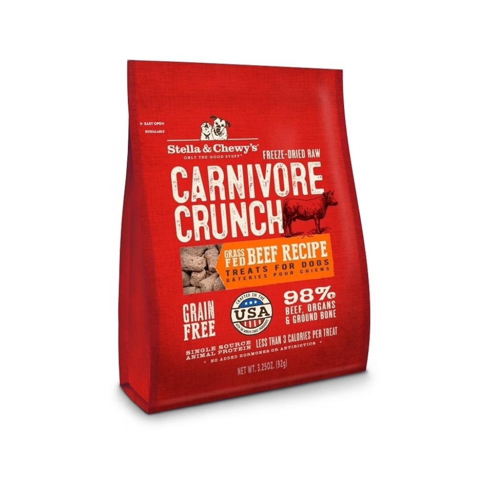 Give your dog the ultimate reward with Stella & Chewy’s Carnivore Crunch Recipe Freeze-Dried Dog Treats. Based on the philosophy that pets thrive on the same diet they would eat in the wild, these treats give your dog what he naturally craves. Made from sustainably-sourced ingredients and raw protein, this recipe starts with 98% meat, organs, and bone—offering the benefits of raw food nutrition with the convenience of freeze-dried preparation. And to ensure the highest quality, each batch is made with care in the USA in Stella & Chewy’s own kitchen.