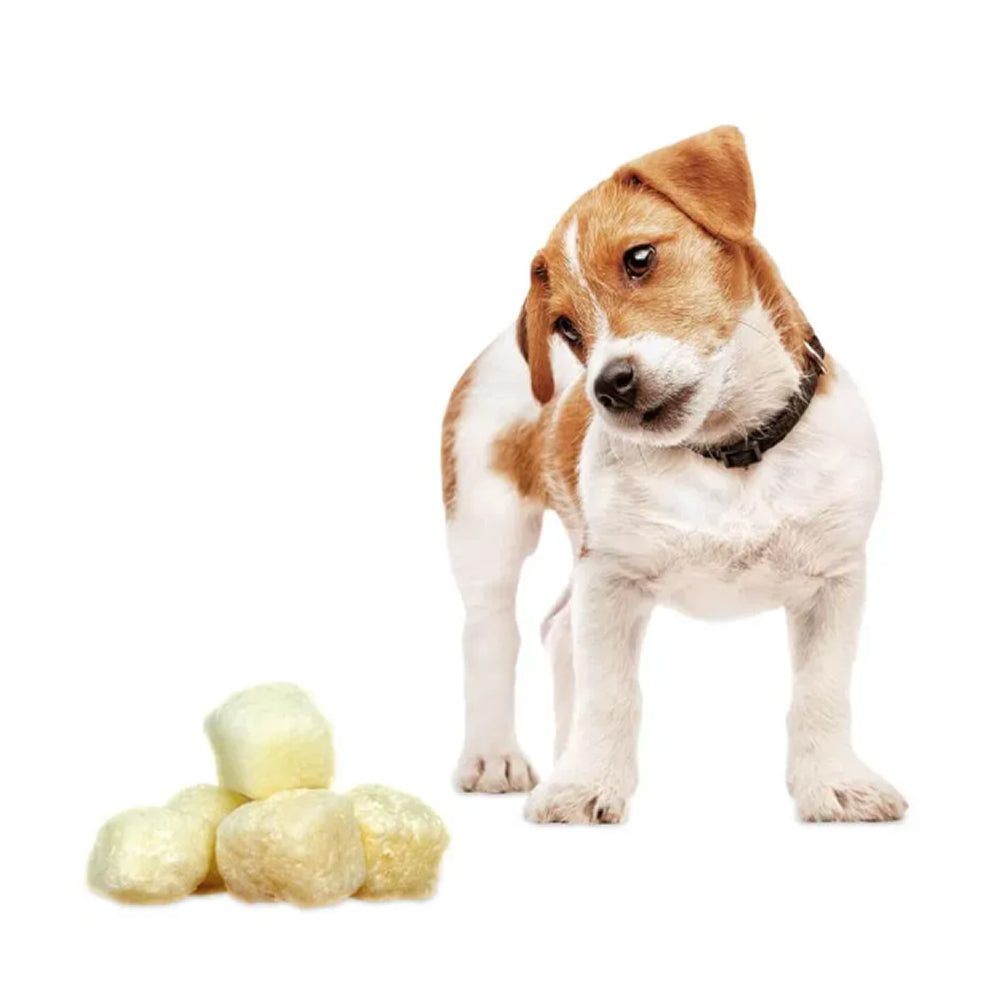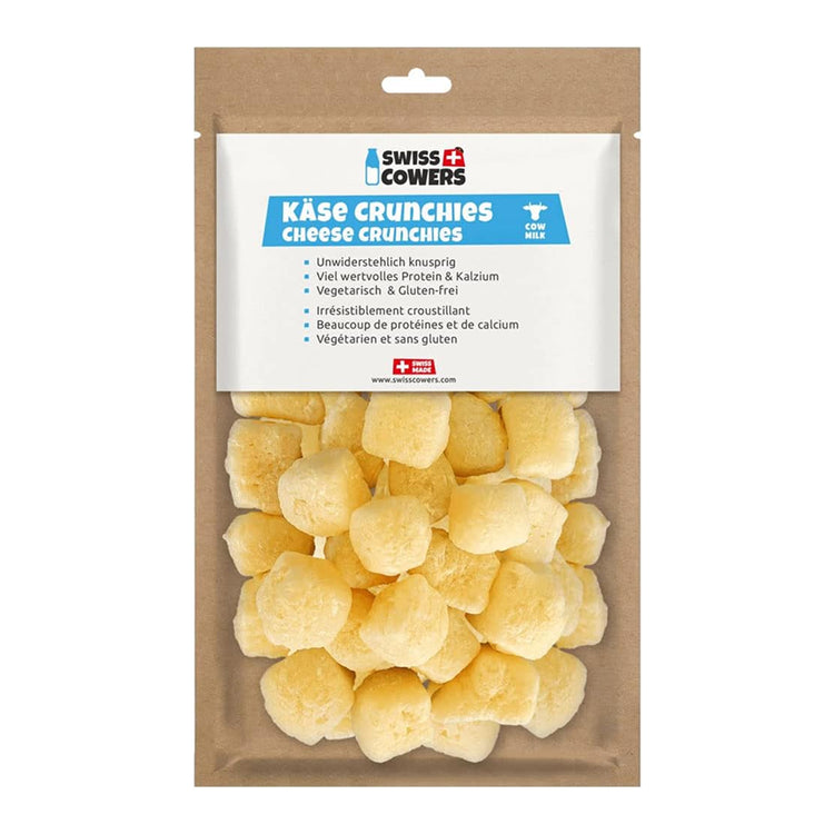 Discover the delicious crunch of Swiss Cowers Cheese Crunchies—a premium, ready-to-eat treat made from over 2 litres of high-quality Swiss milk. Hand-cut into small cubes and baked to crispy perfection, these lactose-free treats deliver a mouthwatering aroma and taste your dog will adore.
