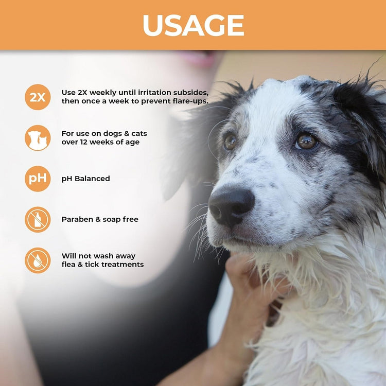 • FOR DOGS AND CATS Our cat and dog shampoo is intended for pets over 12 weeks of age. Use twice weekly until skin clears up, then once a week to help maintain skin health.