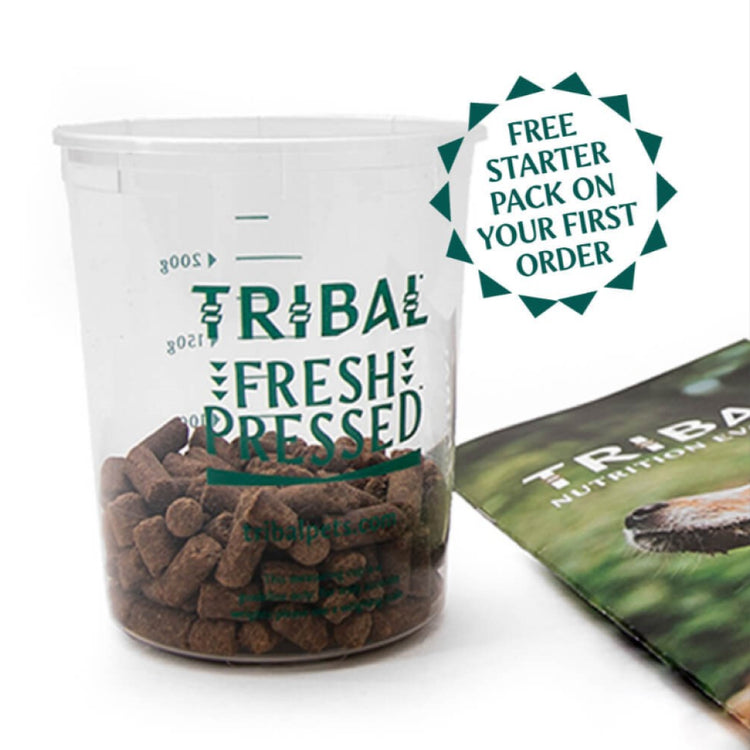 Using Tribal’s unique Fresh Pressed™ process, only nutritious raw meat is used, which is gently cooked at low temperatures to ensure safety while preserving natural nutrients, flavours, and aromas. The ingredients are then cold pressed to create a highly digestible food that breaks down gently in the stomach instead of swelling.