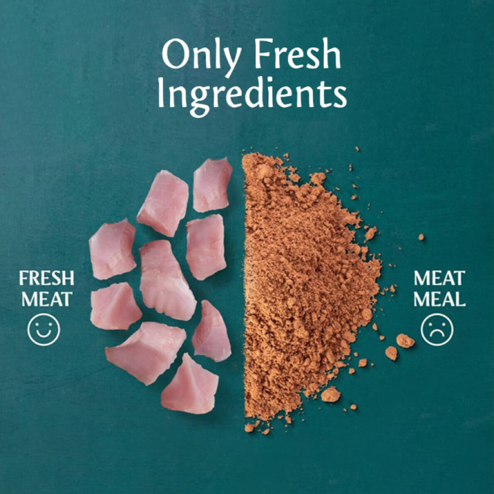 相比一般使用高溫高壓處理肉粉的乾糧,Fresh Pressed™ 能保留更多原有營養,非常適合腸胃敏感或消化較弱的狗狗。