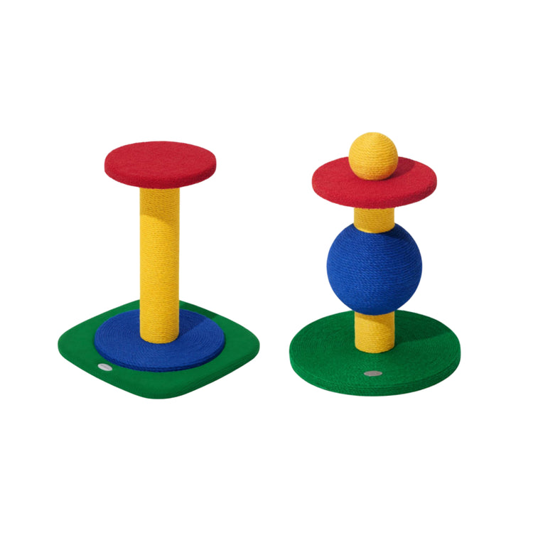 A sculptural twist on the classic post, the Playful Ball design features oversized colorful spheres and a dome top that create 360° scratch zones. Wrapped in natural jute and plush fleece, it offers varied textures for scratching, climbing, and exploring—while standing out as playful home décor.