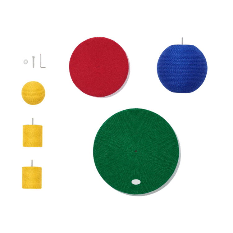 在經典柱子上加入雕塑感設計,Playful Ball 擁有超大彩色球體與圓頂,創造 360° 抓抓區。包裹天然黃麻與絨毛,提供多種抓抓、攀爬與探索的質感,同時成為趣味家居裝飾。