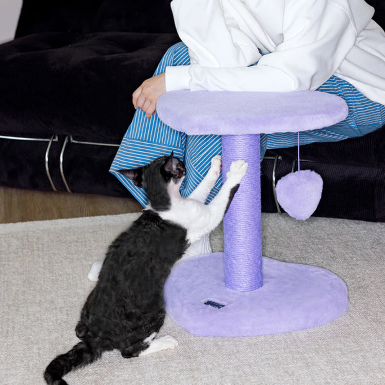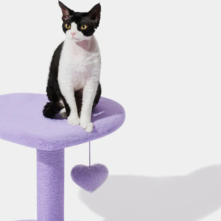 Vetreska Heartpurrple 雙層貓爬架以迷人的柔和紫色打造出獨特而亮眼的設計,將貓咪喜愛的攀爬、抓柱與休息功能完美融合。貓爬架造型優雅,既可提升家居質感,也能為貓咪提供專屬的活動空間。