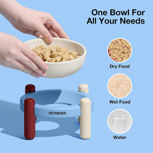 為毛孩嘅用餐時光添上優雅氣息,Vetreska Mist and Merlot 陶瓷寵物碗套裝以高級陶瓷碗配合獨特竹座設計,完美結合現代美感同實用功能。柔和米色底座配搭霧藍或酒紅點綴,為家居增添一抹時尚格調。