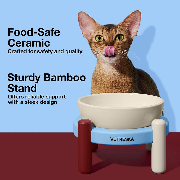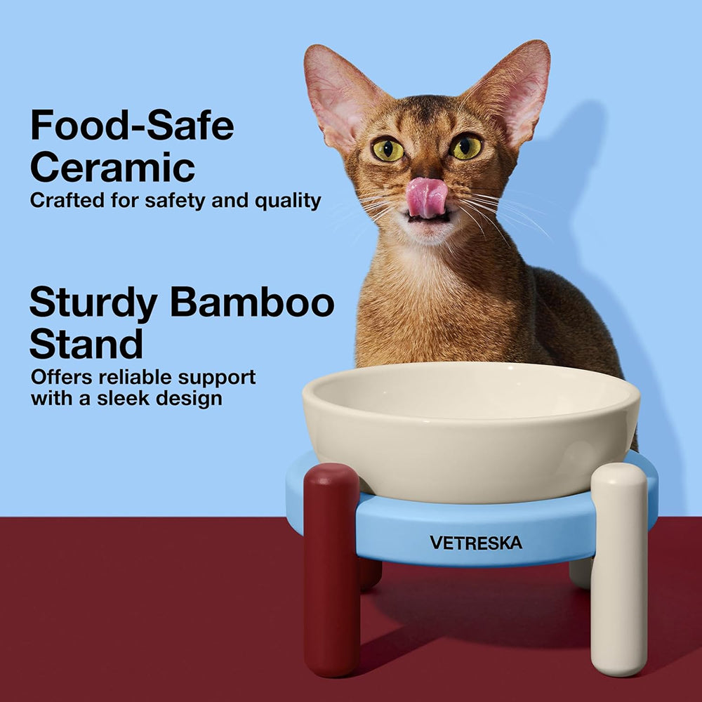 Add elegance to your pet’s mealtime with the Vetreska Mist and Merlot Ceramic Pet Bowl Set. Featuring a premium ceramic bowl on a uniquely crafted bamboo stand, this set blends modern aesthetics with practical benefits. The soft beige base is accented with either mist blue or merlot, offering a chic addition to your home decor.