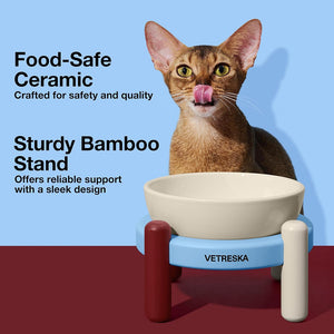 升高嘅竹座有助毛孩保持自然進食姿勢,減輕頸部壓力並促進消化。以寵物安全為設計重點,碗身採用食品級陶瓷製造;同系列仲有配套矽膠餐墊(需另購),幫助保持用餐區乾淨同穩定。陶瓷碗容易清潔,並提供兩個尺寸,無論貓咪定狗狗都適合使用。