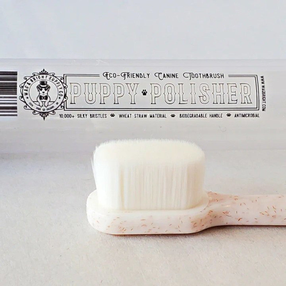 Care instructions: Wash your Puppy Polisher toothbrush after every use. Dry thoroughly. Pat dry if necessary. Ensure brush is fully dry before storing.