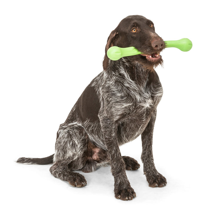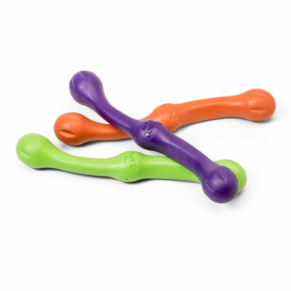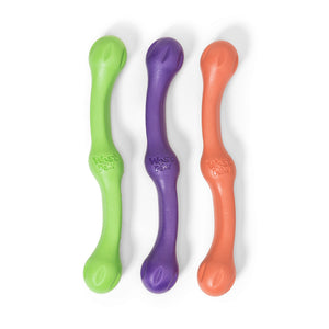 A fetching \"stick\" so wonderfully bendy and squishy that humans like to play with it almost as much as dogs do! Zwig combines shapes and textures to create an irresistible chew-feel with a bouncy action that keeps going even when dogs are just carrying it around (which they love to do). It's easy for even pups or senior dogs to grasp by mouth or hold between the paws while chewing.