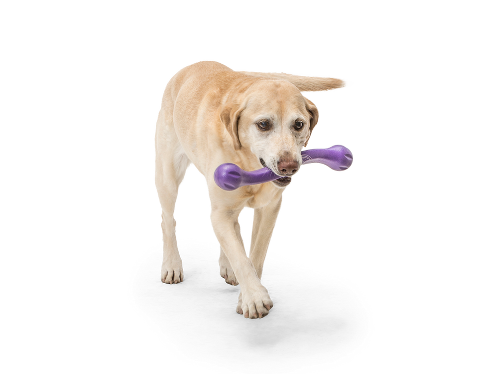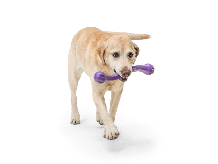 A fetching “stick” so wonderfully bendy and squishy that humans like to play with it almost as much as dogs do! Zwig combines shapes and textures to create an irresistible chew-feel with a bouncy action that keeps going even when dogs are just carrying it around (which they love to do). It’s easy for even pups or senior dogs to grasp by mouth or hold between the paws while chewing.