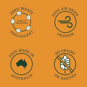 Wildkind Air-Dried Dog Treats are made in the South West of Australia using 100% Australian single proteins, gently air-dried to preserve natural nutrients and rich, meaty flavour. Crafted with a clean and simple approach, these treats deliver protein-rich goodness without grains, fillers, or artificial additives.