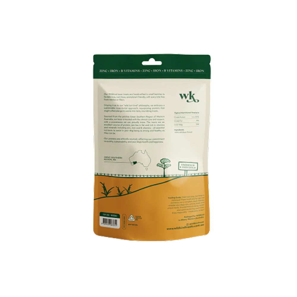 With no grains, fillers, or artificial additives, Wildkind boar jerky is ideal for dogs with sensitivities or pet parents seeking transparent, minimal-ingredient treats. Every cut is ethically sourced, fully traceable, and processed and packed in Albany, Western Australia to ensure premium quality and freshness.
