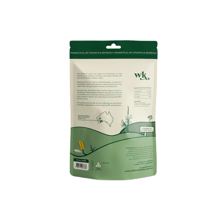 Wildkind air dried treats are made without grains, fillers, or artificial additives. Every cut is ethically sourced, fully traceable, and carefully selected, then processed and packed in Albany, Western Australia to ensure consistent quality and freshness.