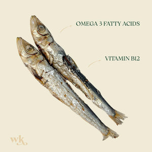 沙甸魚天然富含 維他命 B12,有助支持能量水平、腦部功能及紅血球健康;同時含有豐富的 Omega-3 脂肪酸,有助關節健康、腦部發展及保持亮澤毛髮。