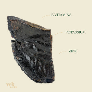 牛肝天然富含多種重要營養素。鋅 有助維持皮膚健康、亮澤毛髮及免疫功能;鐵質 有助促進氧氣輸送,提升活力;而 B 群維他命 則有助支持腦部功能、能量代謝及毛髮健康。