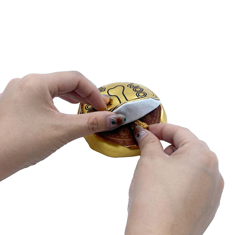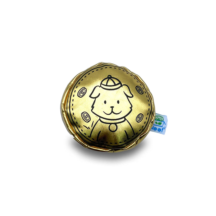 The toy features a peelable “gold foil” outer layer that reveals the chocolate-style coin underneath, adding an extra layer of discovery and excitement. A hidden pocket allows you to tuck treats inside, encouraging nose-work activities that help train your dog’s cognitive skills and keep them engaged during interactive play sessions.