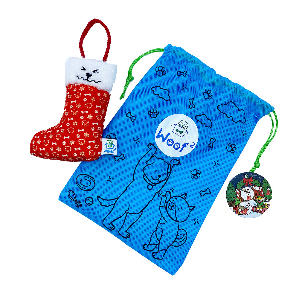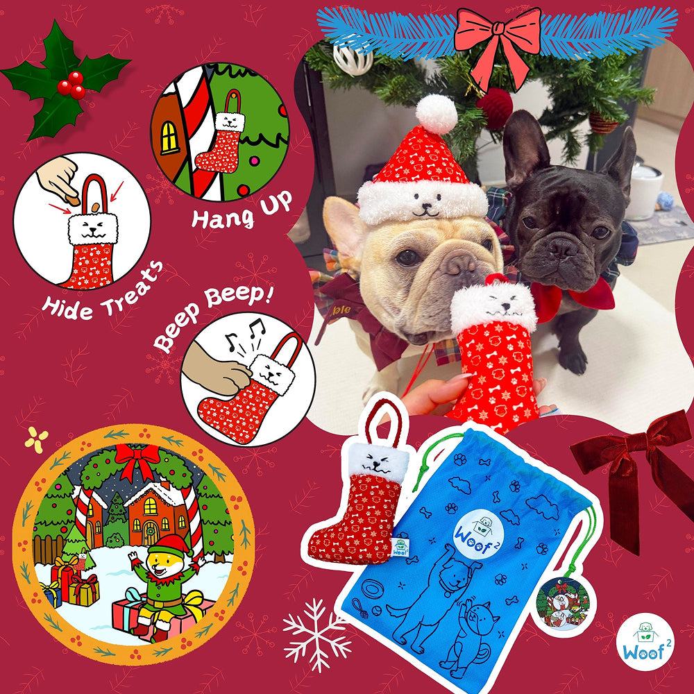 Woof² Christmas Stocking 嗅聞互動毛絨玩具以可愛的聖誕襪造型設計,是送給狗狗與貓咪的完美節日禮物。玩具集趣味、訓練與節日氣氛於一身,讓寵物在節日期間保持活力與快樂。