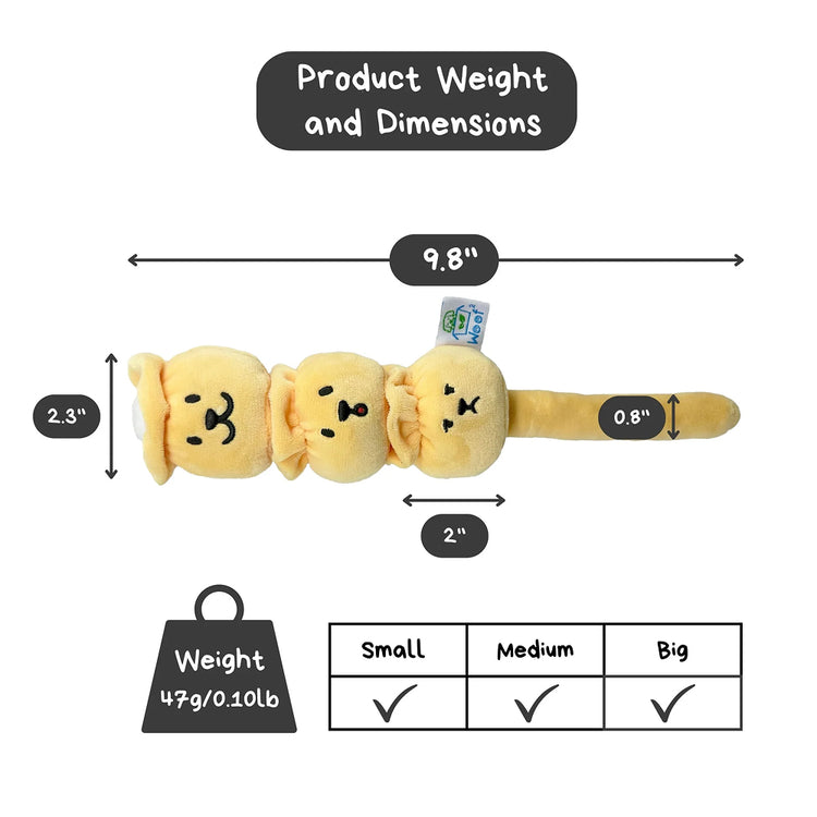 Designed for interactive play, each plush “siu mai” can slide up and down or be taken out individually, offering endless fun and engagement. The toy also features a stuffed wooden rod for safe chewing, along with built-in paper crinkle material to keep your pup curious and entertained.